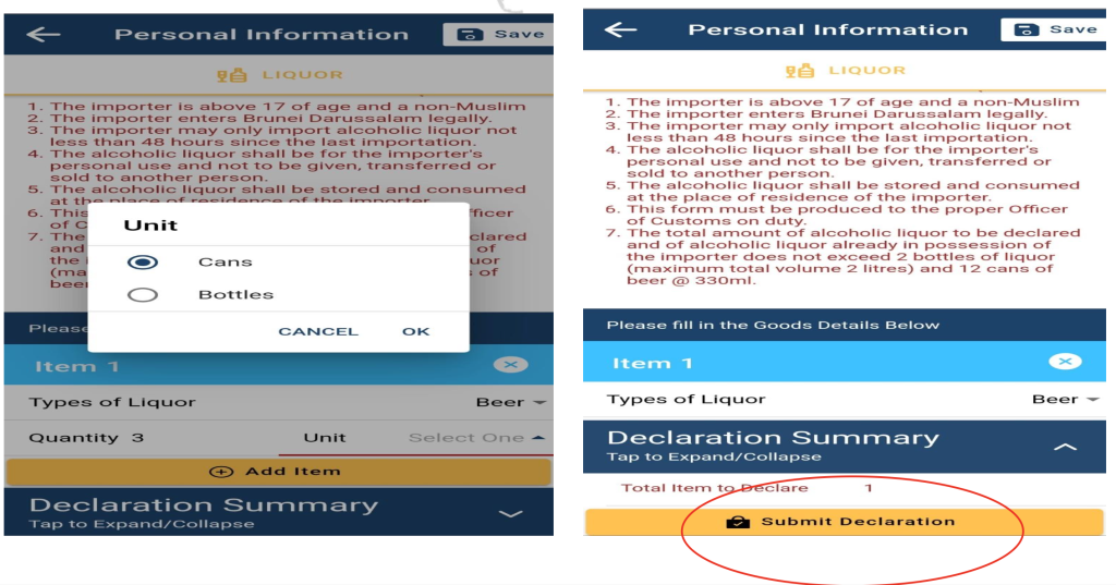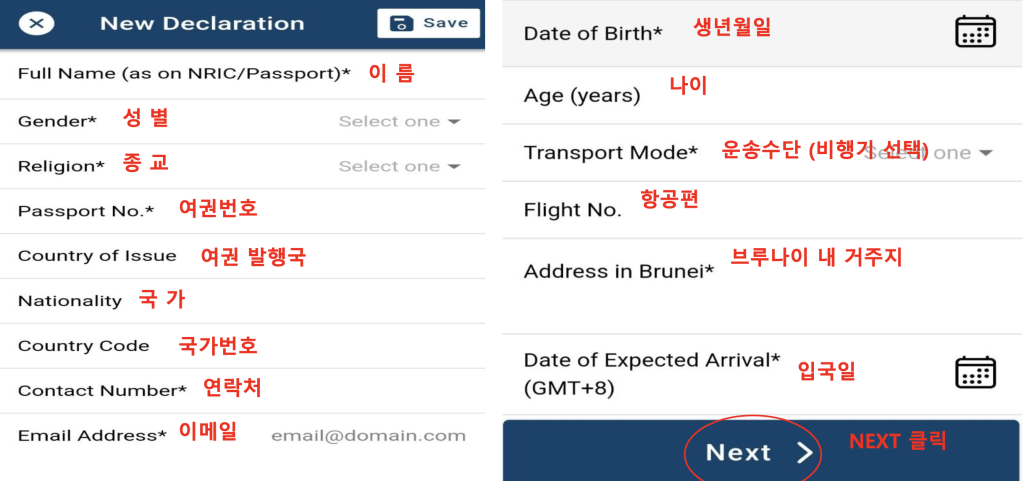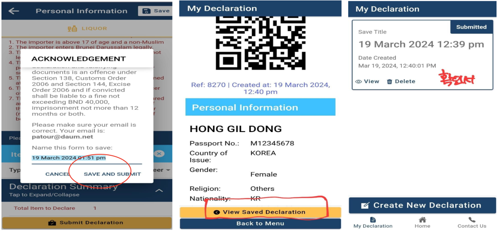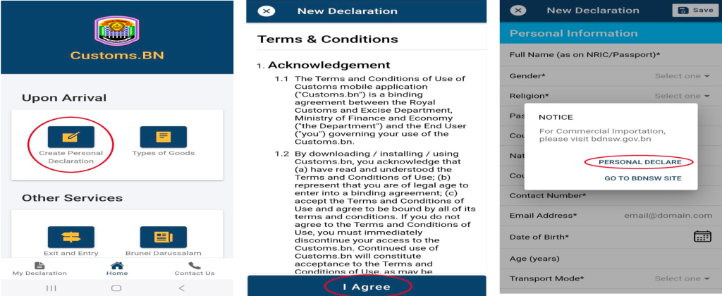 ๊ตญ ์ ์ธ๊ด์ ๊ณ ์(Customs Declaration Form) ๋๋ Customs.BN ์ ์์ ๊ณ ์ฑ ์ ์ฃผ๋ฅ ๋ด์ญ ๋ฐ๋์ ๊ธฐ์ฌํ๊ณ ,
